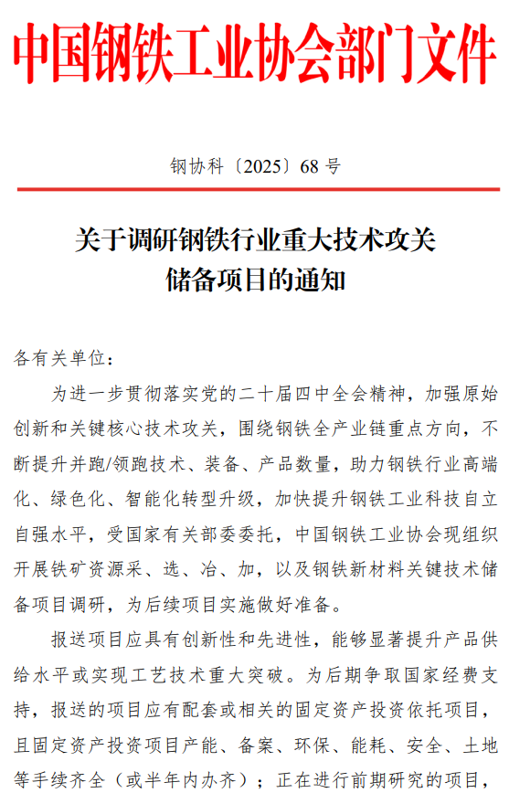 關(guān)于調(diào)研鋼鐵行業(yè)重大技術(shù)攻關(guān)儲(chǔ)備項(xiàng)目的通知