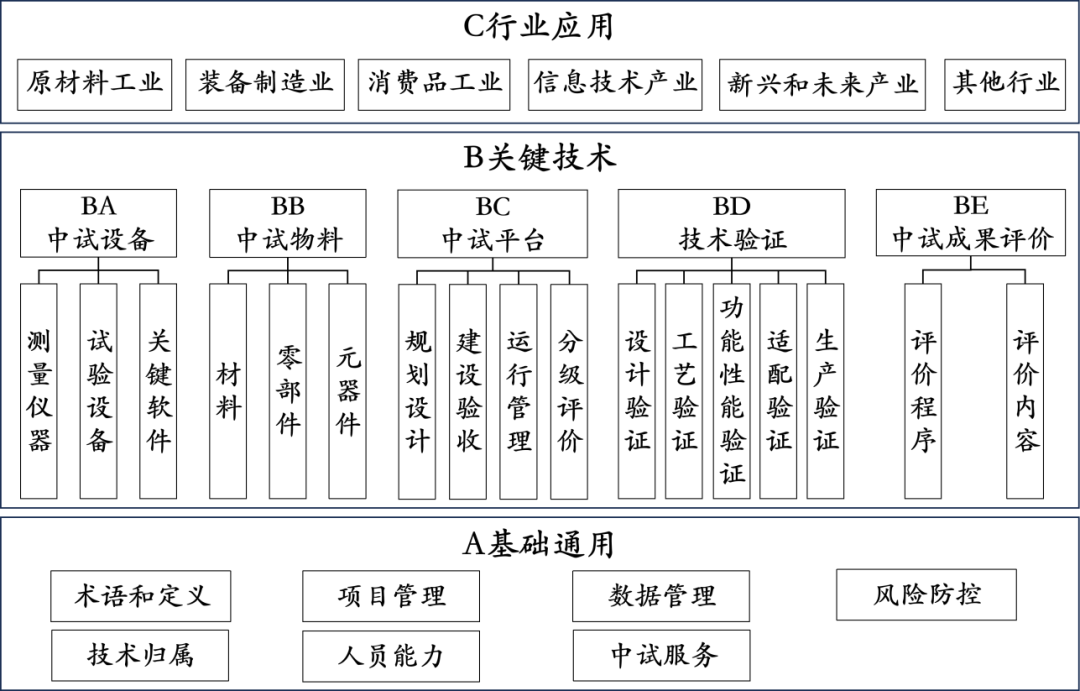 圖1 制造業(yè)中試標(biāo)準(zhǔn)體系結(jié)構(gòu)圖