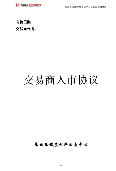 東北亞鎂質(zhì)材料交易中心交易商管理辦法